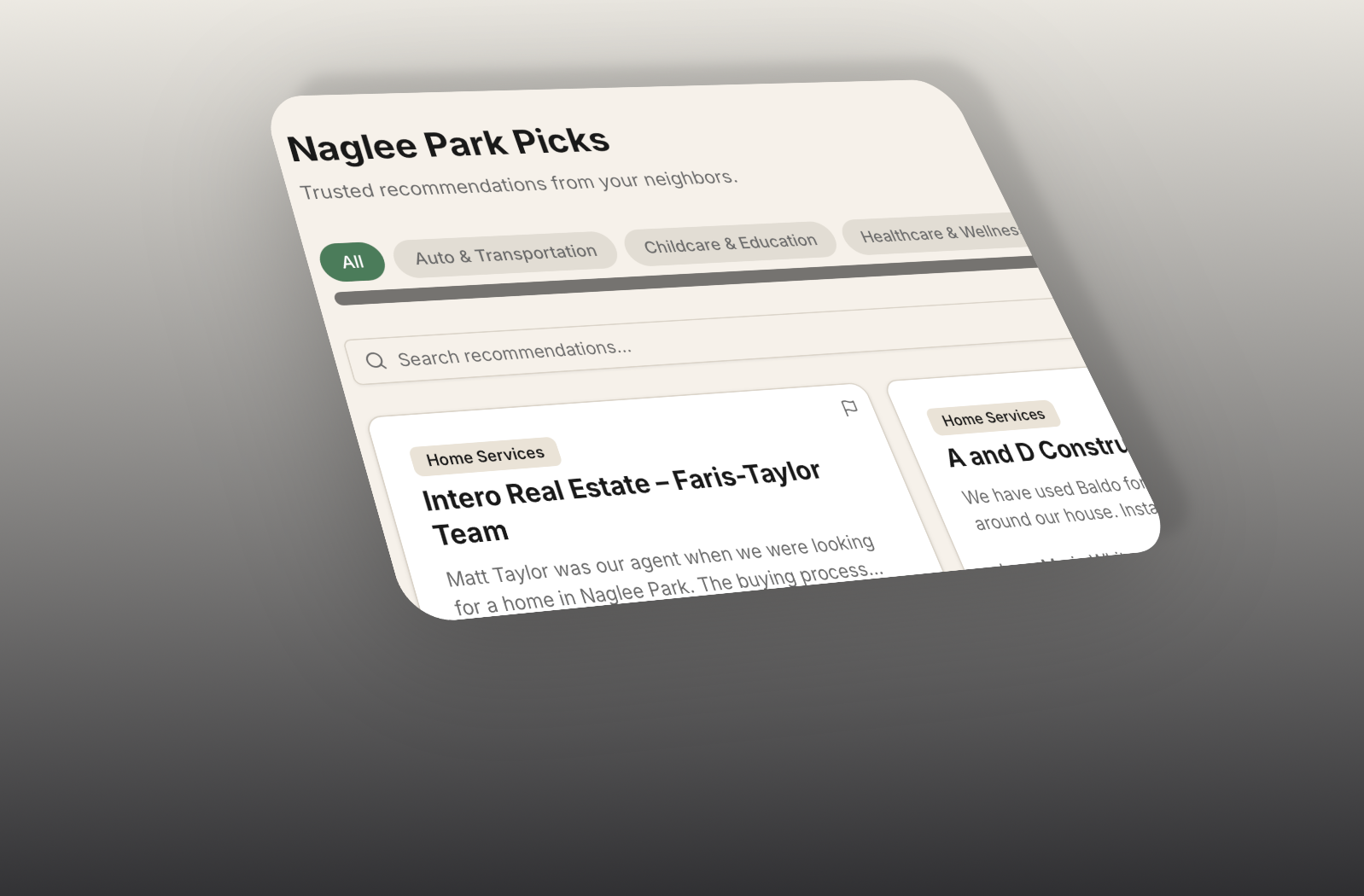 This helps keep the community trustworthy. Recommendations come from people you know — or from neighbors connected through someone you know.