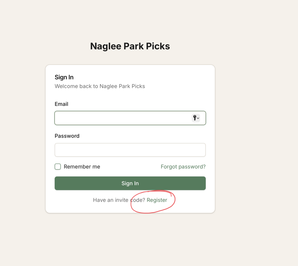 Once you receive an invitation code from a neighbor, you can register at https://npp.jmwhite.me. Note: It’s not a password. Click on the “Register” link.